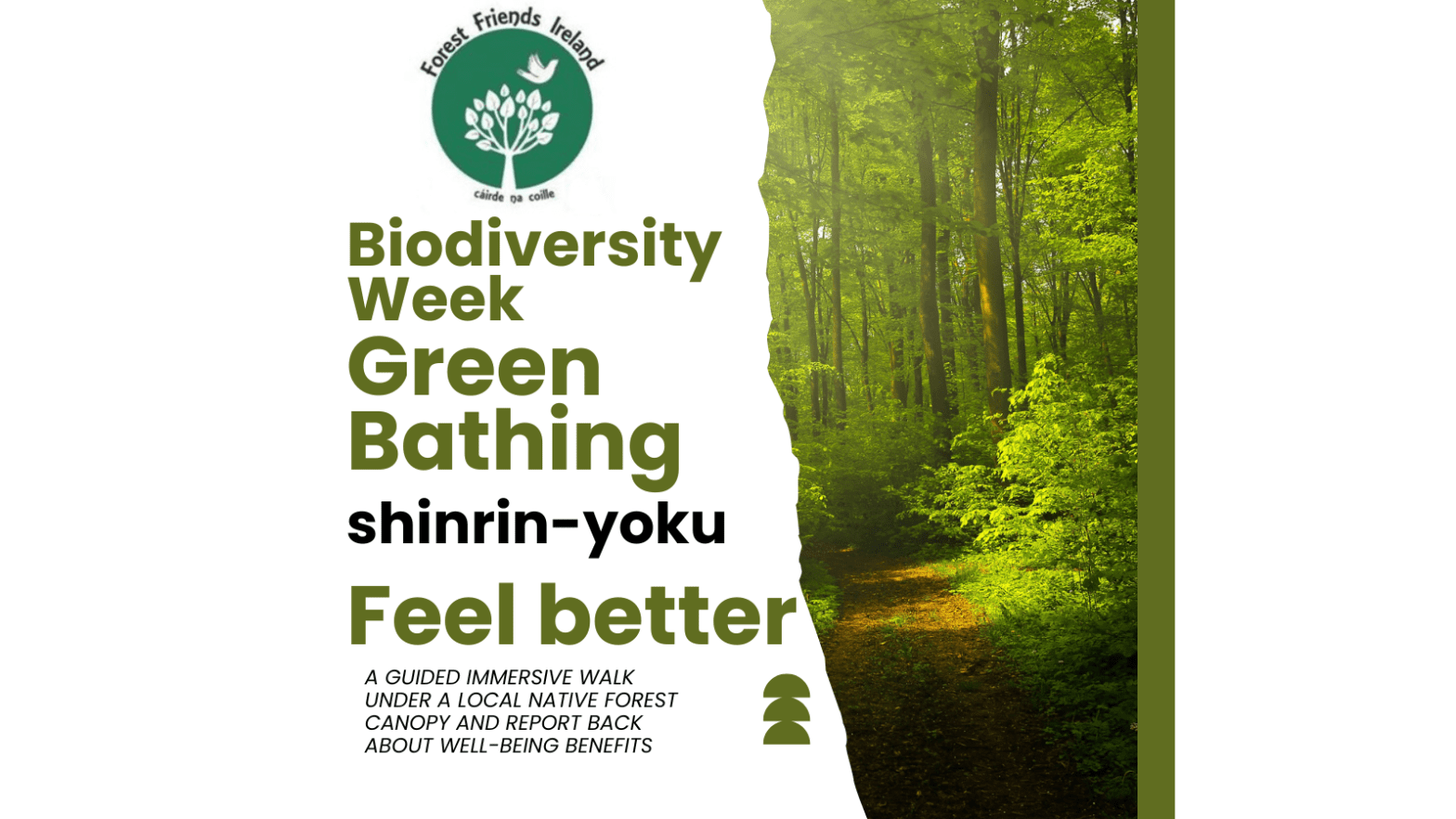 We have produced an original recorded audio to be used for self guided forest bathing relaxation in a native woodland area of your choice. Choose a location with continuous tree canopy around Ireland and experience forest bathing with friends and family during Biodiversity Week.